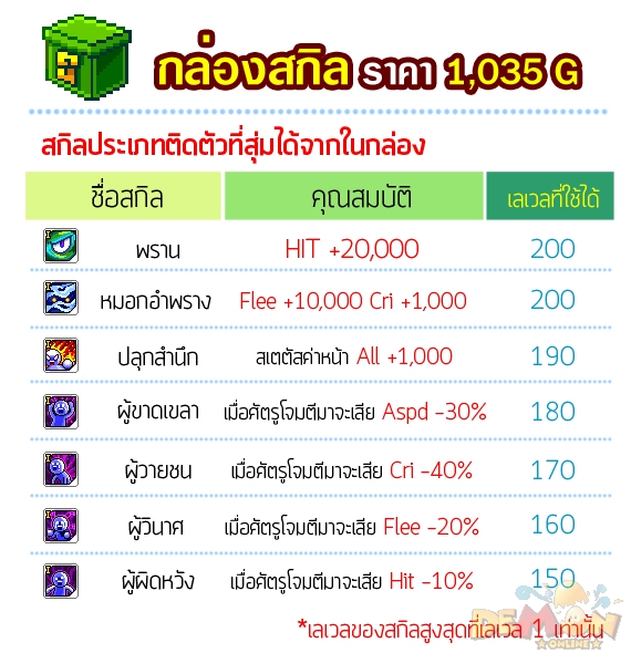หาได้จาก  : ร้านค้าสกิลหมู่บ้านสายลม ราคา 10,000 รีช